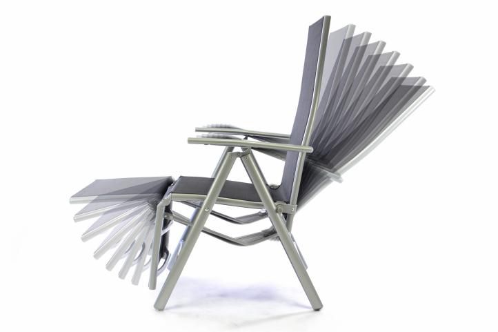 Praktické kreslo je ľahké, úsporné na miesto, dobre uskladniteľné a priam nabáda k relaxácii. Opierka chrbta a rúk je nastaviteľná do 7 rôznych polôh. Tento model môžete použiť ako relaxačnú stoličku alebo ako ležadlo na opaľovanie. Kvalitná textília (PVC potiahnutý polyester) je počasiu odolná a švy sú zvarené. Kreslo zaručuje optimálnu ventiláciu na sedadle a opierke chrbta. Voľné napnutie tkaniny sa individuálne prispôsobuje kontúre chrbta. Kreslo je vhodné na terasu, záhradu, balkón, kúpalisko alebo pri kempovaní.