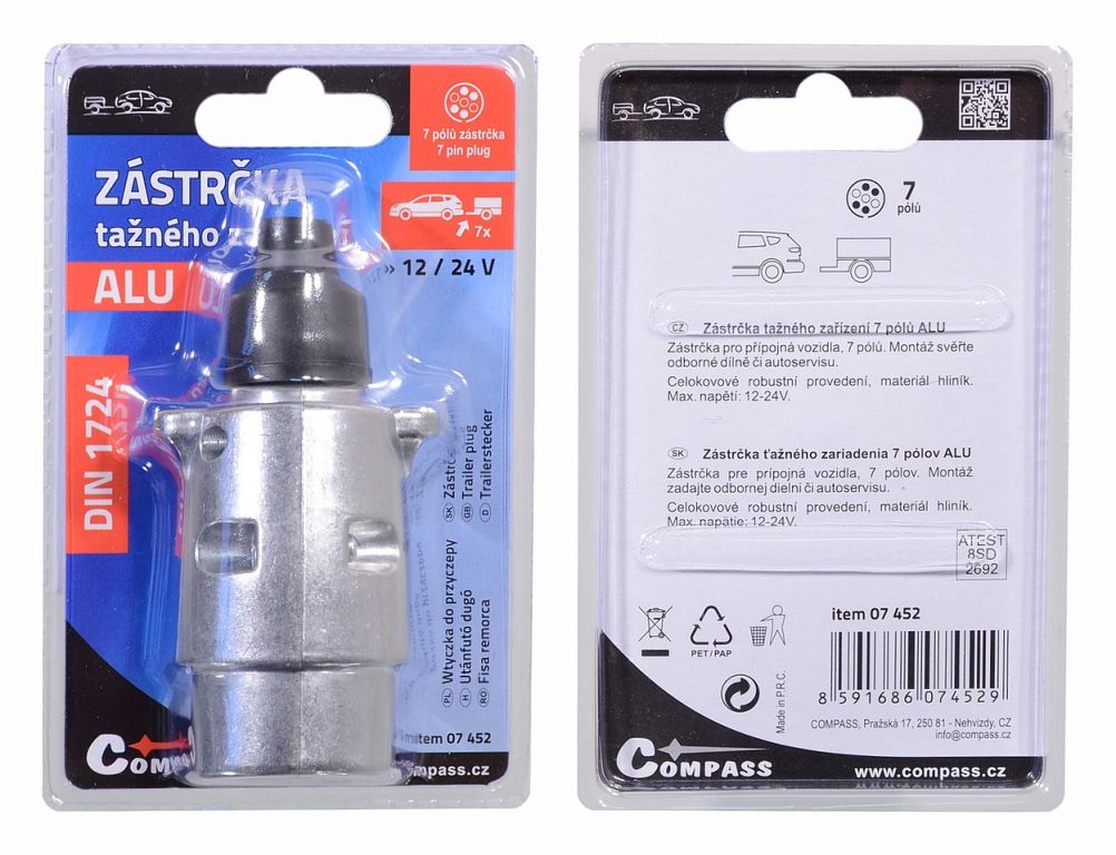 Celokovová ALU zástrčka pre prípojné vozidlá, podľa normy DIN 1724, 7 pólov.