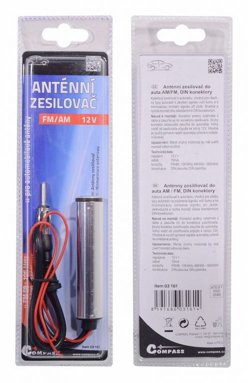 Káblový zosilňovač k autorádiu, vhodný pre všetky typy autorádií na zosilnenie signálu voči šumu a na minimalizáciu kolísania signálu pri jazde. Jednoduchá a rýchla montáž vďaka štandardným DIN konektorom.