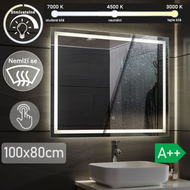 AQUAMARIN kúpeľňové zrkadlo s LED osvetlením, 100 x 80 cm
