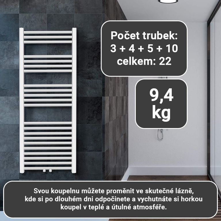 AQUAMARIN vertikálny kúpeľňový radiátor 140 x 60 cm, biely
