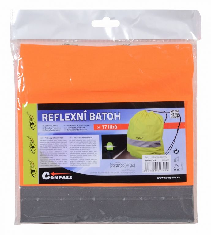 Batoh výstražnej farby opatrený reflexným pruhom s vysokou odrazivosťou svetla. Batoh je možné nosiť ako klasicky cez obe ramená, tak aj ako jednoduchý vak na športové potreby cez jedno rameno.