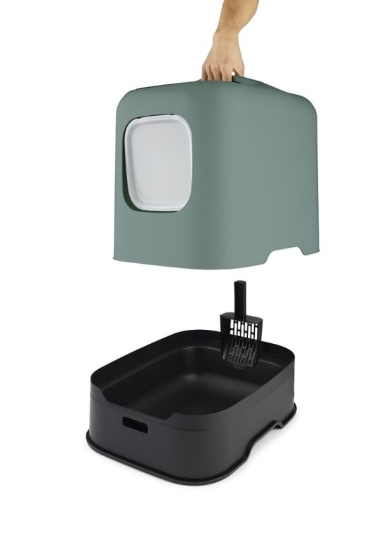 Toaletná miska pre mačky BIALA vyrobená z recyklovaného plastu. - Moderný a funkčný dizajn - Dvierka s magnetom zabezpečujú samozatvárací systém - Pohodlný vstup pre mačky - Obsahuje filter s aktívnym uhlím na absorpciu nepríjemných zápachov - Obsahuje lopatku - Odnímateľný vrchný kryt s rukoväťou - Vysoko kvalitný dizajn od spoločnosti Rotho.
