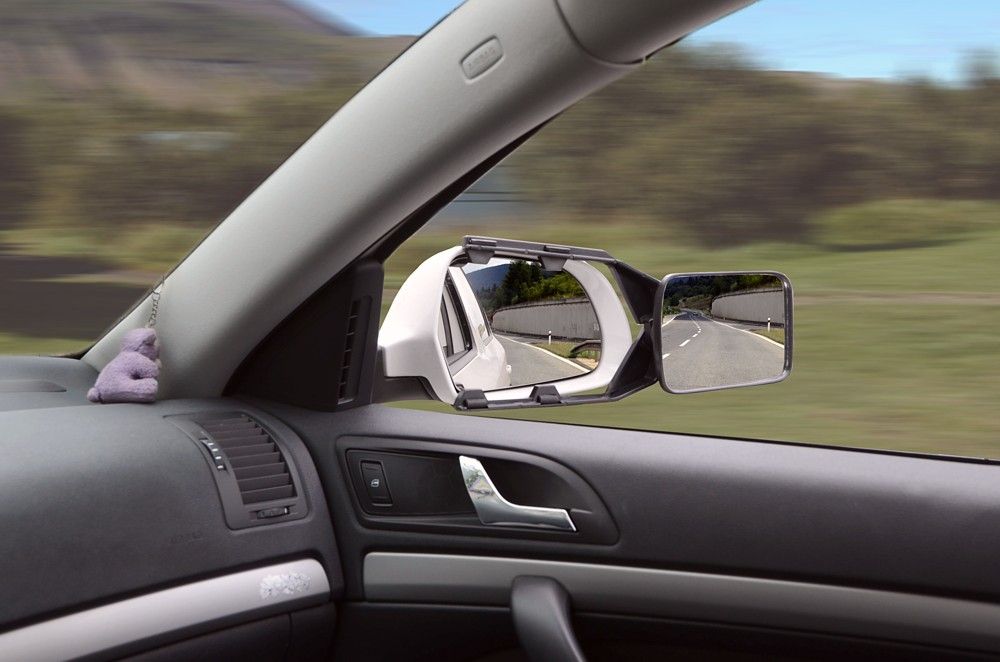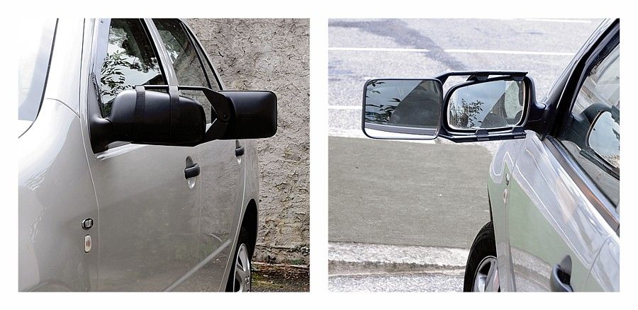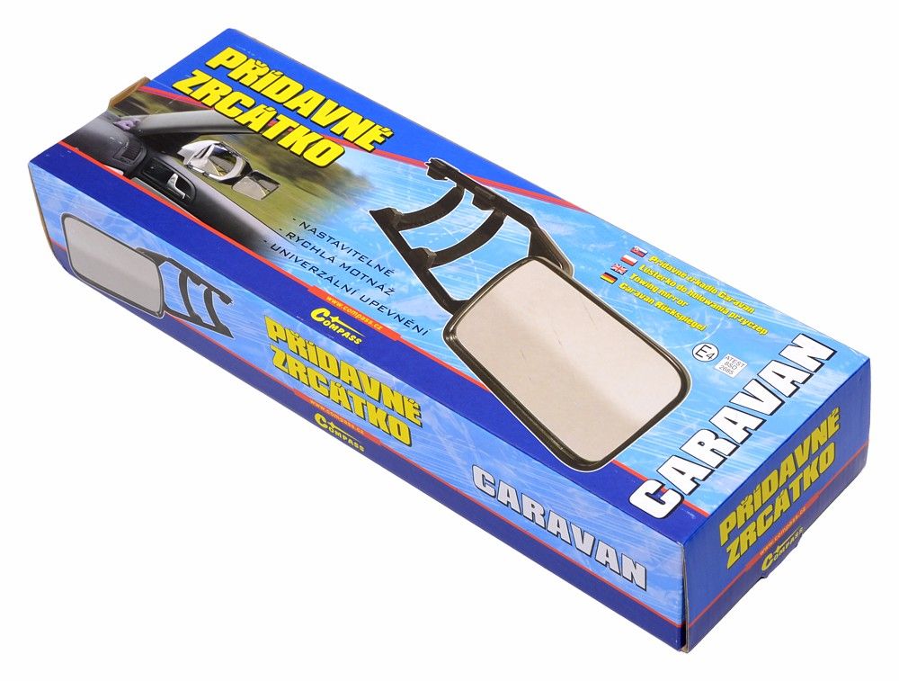 Prídavné bočné zrkadlo s nastaviteľným uhlom do všetkých strán. Vhodné takmer pre všetky typy vozidiel, pripevňuje sa na existujúce bočné spätné zrkadlo. Vďaka gumovým upínačom zrkadlo nevibruje. Je možné použiť pre ľavú aj pre pravú stranu. Ideálny pomocník na jazdu s prívesom či karavanom. Neobmedzuje funkciu existujúceho zrkadla.