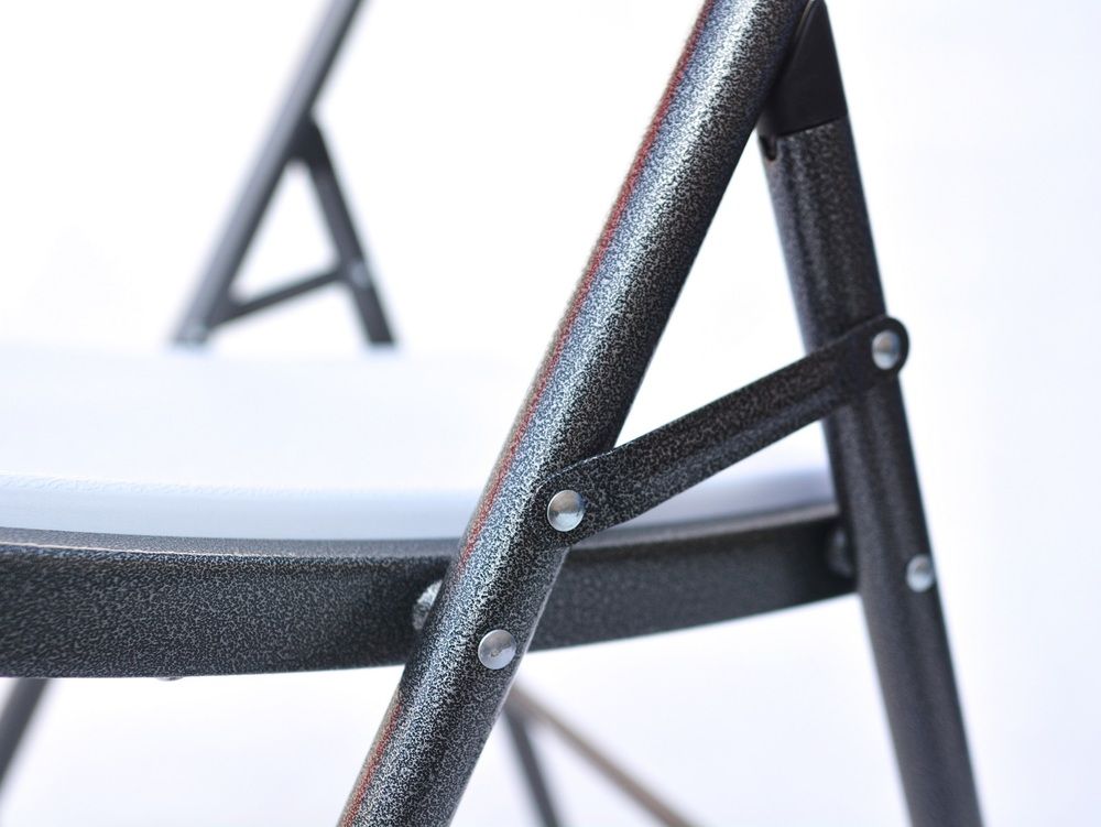 Konštrukcia je ošetrená kladivkovou farbou. Stolička je vhodná do interiéru aj exteriéru. Ideálna pre cateringové a kempingové aktivity.