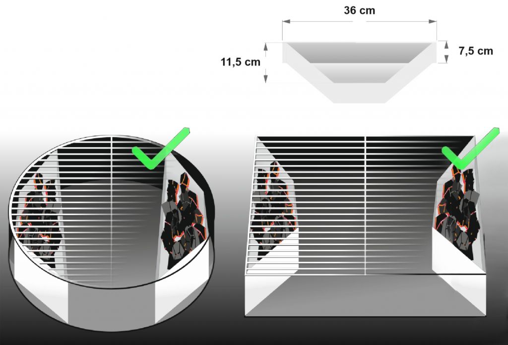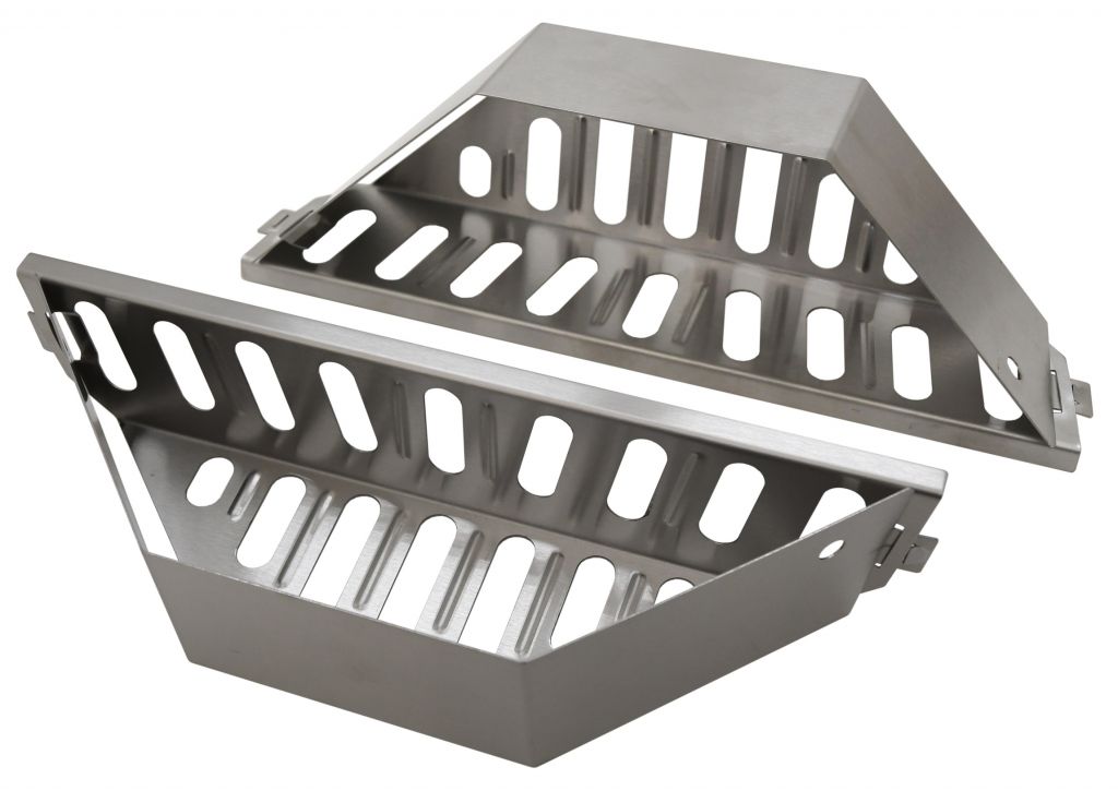 Súprava boxov pre nepriame grilovanie slúži na grilovanie pokrmov mimo priameho žeravenia dreveného uhlia. Metóda nepriameho grilovania sa používa pri objemnejších pokrmoch, ktorých príprava zaberie viac času, napríklad celé kura, rebrá a ďalšie. Nepriame grilovanie je pozvoľné a nedochádza pri ňom k nechcenému pripaľovaniu pokrmov. Boxy sú v grile umiestnené tak, aby priamo nespálili vkladané potraviny. Sú naplnené už zapáleným uhlím. Teplo sa potom počas grilovania lepšie rozvádza. Súprava obsahuje 2 ks týchto boxov z nerezovej ocele. Každý box má rozmery 36 x 11,5 x 7,5 cm. Je vhodný ako do hranatých, tak aj okrúhlych grilov patričných rozmerov.