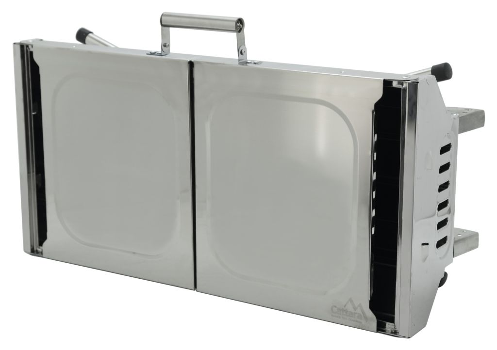 Prenosný gril IGRANE hodiaci sa na cesty, do kempu a na ďalšie outdoor využitie. Konštrukcia je vyrobená z kvalitnej nerezovej ocele s lesklým povrchom. Stabilitu zaisťujú vyklápacie nohy. Rozmery grilu 112 x 30 x 71 cm. Na tepelnú prípravu pochutín je gril vybavený párom oceľových roštov s celkovou grilovacou plochou 57 x 30 cm vo výške 71 cm. Ventilácia bokoch konštrukcie zaistí plynulý prísun vzduchu. Pre ľahké prenášanie je možné gril jednoducho zložiť. Prepravné rozmery sú 62 x 32 x 19 cm.