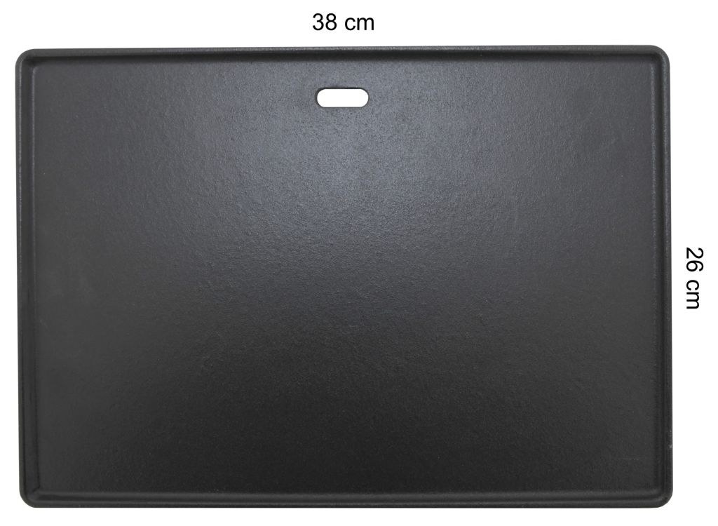 Grilovací plát z liatiny s rozmermi 26 x 38 cm na grilovanie pokrmov. Plát je vhodný pre akýkoľvek gril a uľahčí prípravu najrôznejších pokrmov bez priameho kontaktu s ohňom.