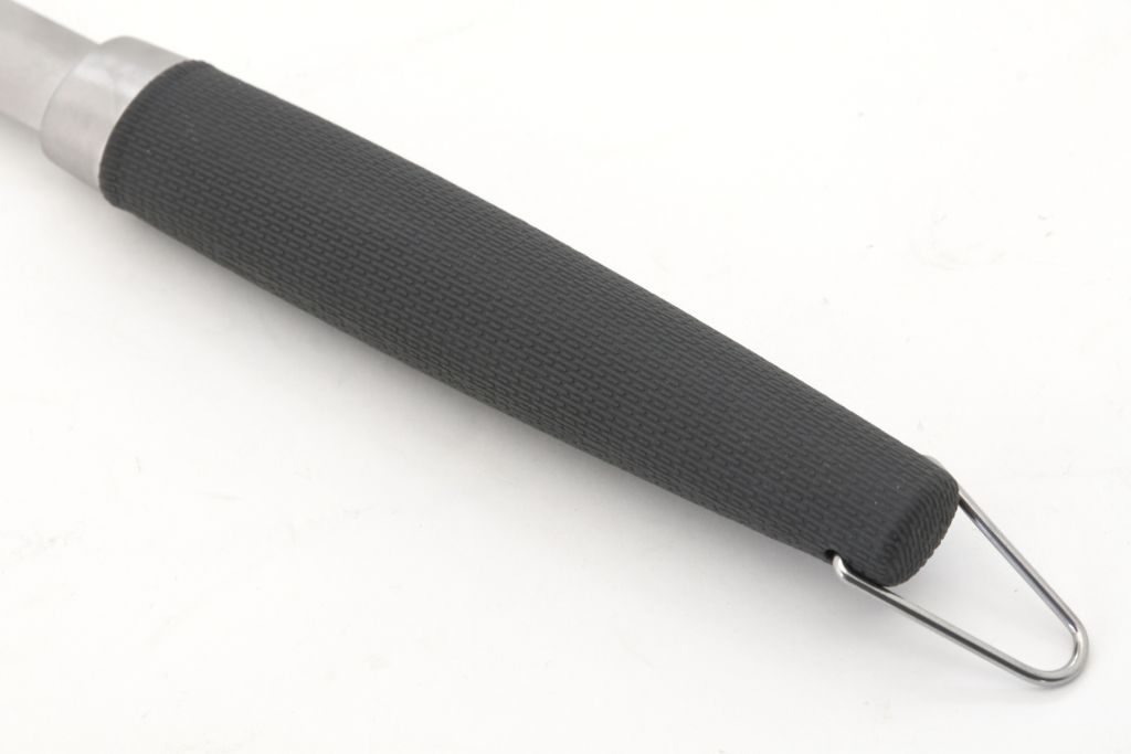 Zhotovenie z kvalitnej ocele s hrúbkou 1,8 mm. S rukoväťou z odolného materiálu s ergonomickým tvarovaním v žraločej šedej farbe. Zakončenie je opatrené háčikom na zavesenie. Nástroj je vybavený dvojzubou vidlicou s hrotmi dĺžky 10 cm. Nástroj nájde uplatnenie najmä doma pri grilovaní, ale aj v táborisku, v kempe a inde v prírode.