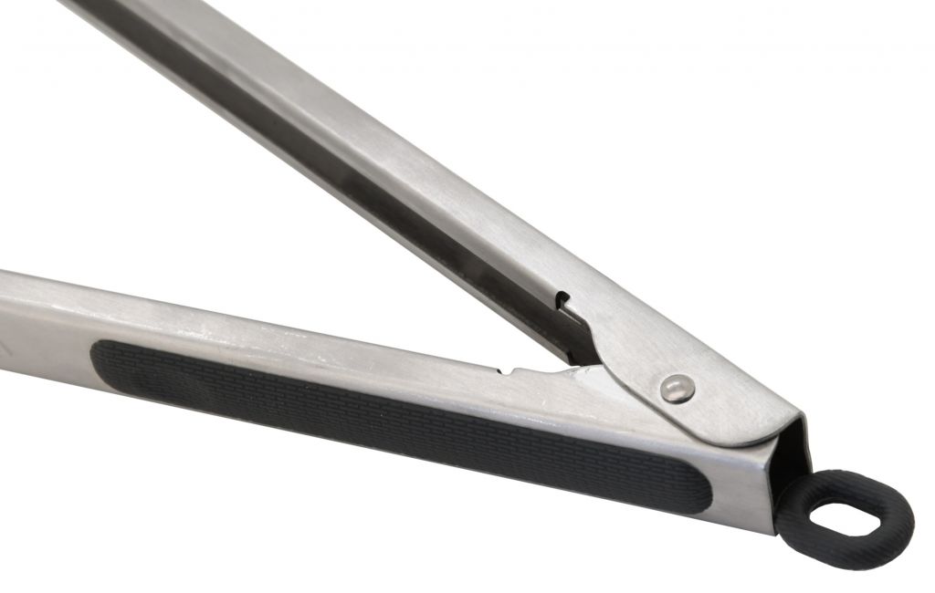 Zhotovenie z kvalitnej ocele s hrúbkou 1,8 mm. S rukoväťou z teplote odolného materiálu s ergonomickým tvarovaním v žraločej šedej farbe. Zakončenie je opatrené otvorom pre možné zavesenie. Nástroj s rozmermi 45 x 4,5 x 4,5 cm je vybavený perforovanými kliešťami s rozmermi 10 x 4,5 cm, zadná časť so závesným otvorom plní funkciu uzamknutia otvárania klieští, tie tak zostanú v kompaktnej neroztvorenej polohe pre ľahké uloženie. Nástroj nájde uplatnenie najmä doma pri grilovaní, ale aj v táborisku, v kempe a inde v prírode.