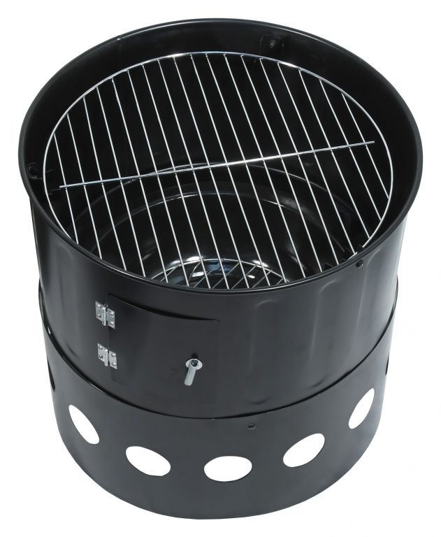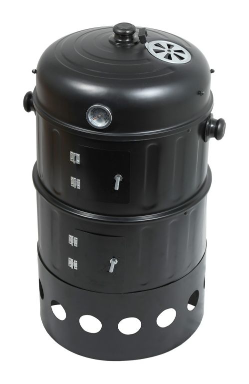 Konštrukcia je vyrobená z troch hlavných dielov z kvalitnej ocele s odolným čiernym povrchom. Jednotlivé časti možno úplne odňať, gril je ďalej vybavený dvomi nádobami (misami) vhodnými na uhlie, ale aj na vodu, čím je možné jeho použitie aj na moderné grilovanie nad vodným kúpeľom. Držadlá sú z odolného plastu a poskytujú dostatočný priestor pre úchop. Veko grilu je vybavené teplomerom pre ľahšiu kontrolu grilovacieho priestoru. Medzi ďalšiu výbavu patrí regulovateľná ventilácia a dvierka pre doplnenie paliva či kontrolu pokrmov. Gril je pre samotnú tepelnú prípravu Vašich pochutín vybavený roštom z chrómovanej ocele.