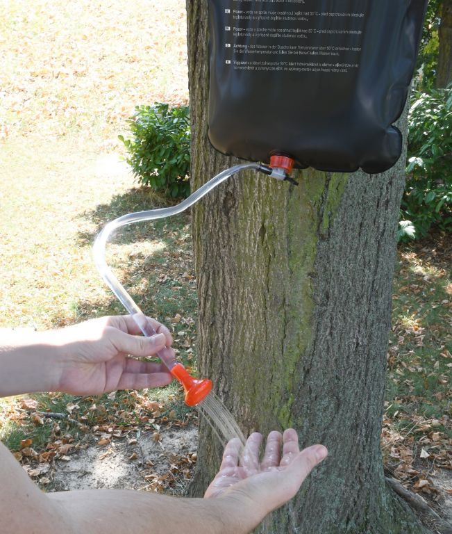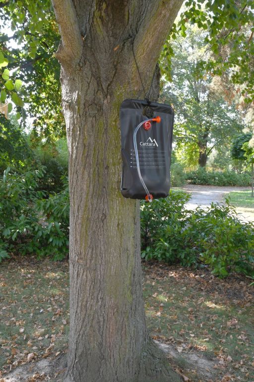 Kempingová sprcha s objemom 20 l vhodná na zavesenie na strom, v kempe a na iných miestach.