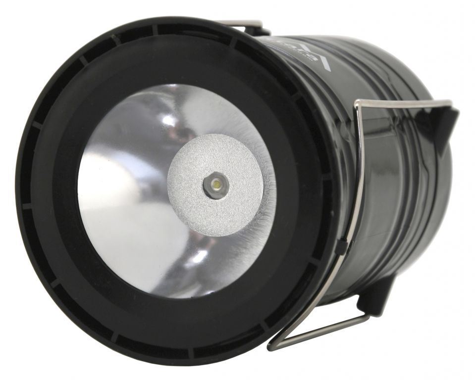 Kempingové LED svietidlo s vysúvacím telom, vybavené Li-Ion akumulátorom a solárnym panelom.