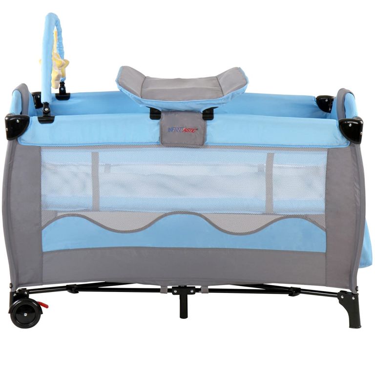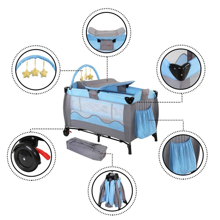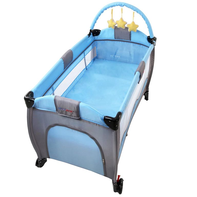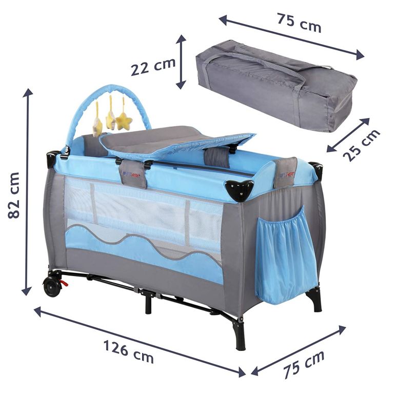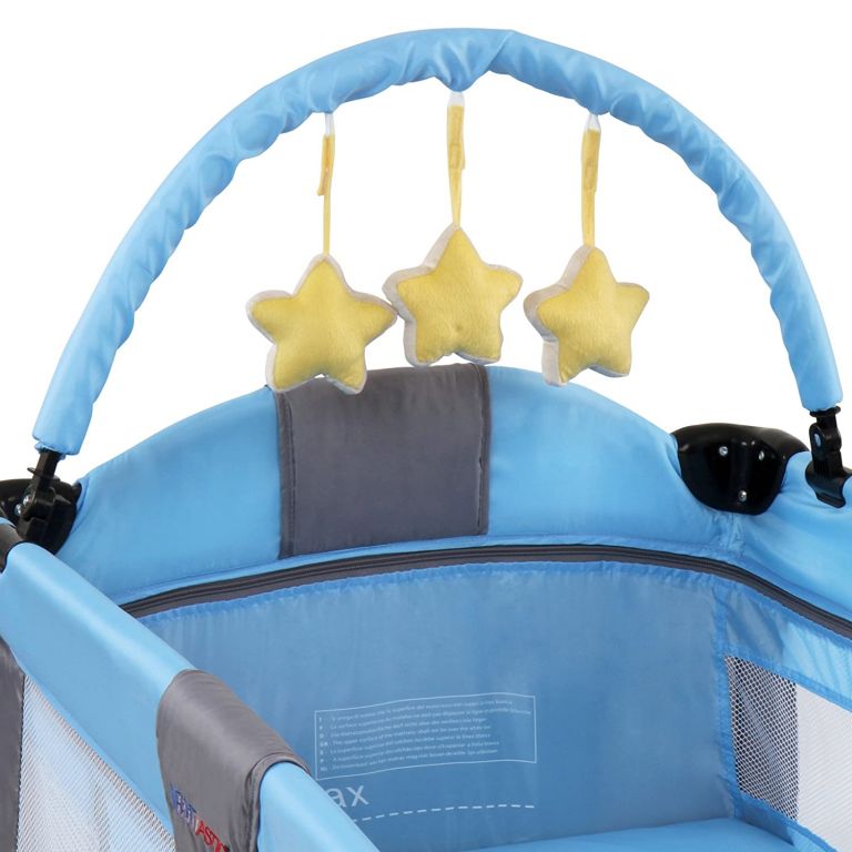 Táto detská postieľka je naozaj praktická. Ponúkne Vám hrací oblúk a prebaľovaciu podložkou pre dojčatá. Matrac je polstrovaný. Herný oblúk je so zavesenými plyšovými hviezdami. Postieľka má praktický vstup na zips a úložný priestor na predných stranách, polstrované hrany a zaoblené rohy pre deti do veku 36 mesiacov alebo pre maximálnu hmotnosť dieťaťa cca 15 kg. Umývateľný poťah Vám ponúka jednoduchú údržbu. Postieľka sa ľahko zloží a úsporne uschová.