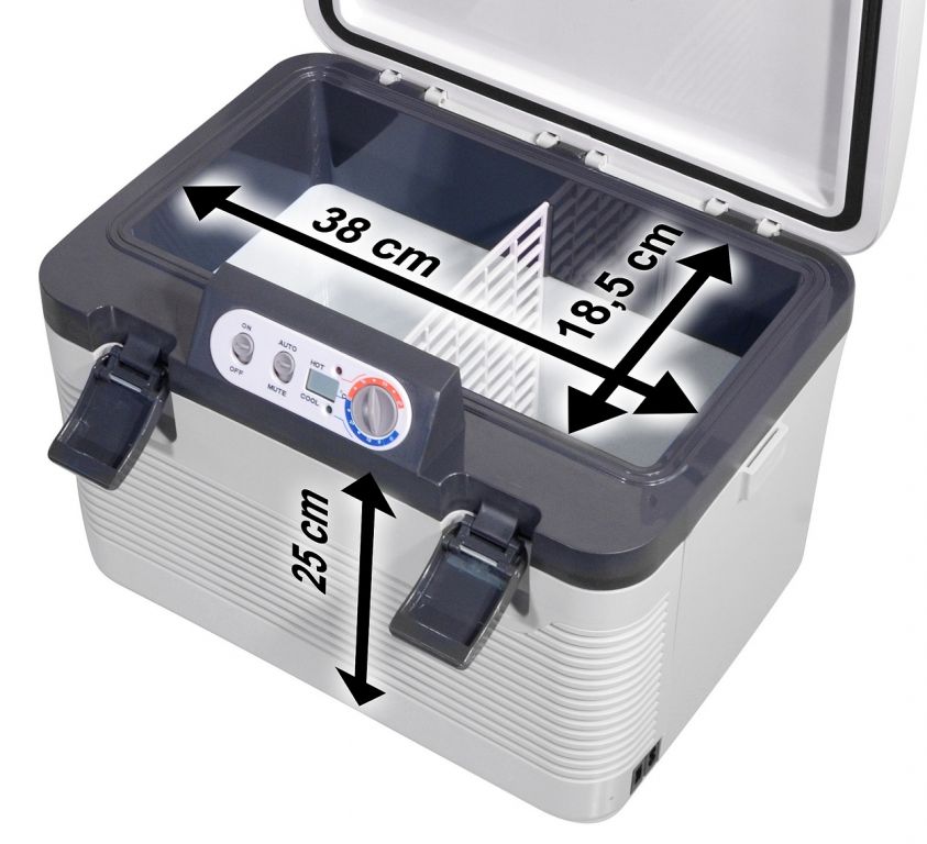 Prenosný chladiaci box s možnosťou ohrevu, napájanie zo zásuvky autozapaľovača 12 V alebo 24 V a tiež z bežnej zásuvky 230 V. Ide o dvojventilátorový systém chladenia neobsahujúci žiadne freóny, ktorý umožňuje dosiahnuť vnútri boxu teplotu o 21 - 23 °C pod okolitú teplotu (pri 25 °C). Systém je navyše vybavený aj režimom ohrevu, kedy je možné udržiavať vo vnútri boxu teplotu 50 - 65 °C. Chladiaci box je vybavený displejom, ktorý zobrazuje vnútornú teplotu. Vyniká tiež nízkou hladinou hluku, ktorú je navyše ešte možné potlačiť prepnutím do režimu MUTE, kedy je beh ventilátorov optimalizovaný tak, aby hladina hluku bola čo možno najnižšia.