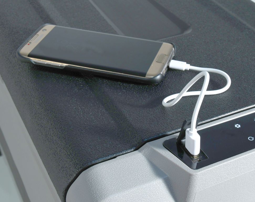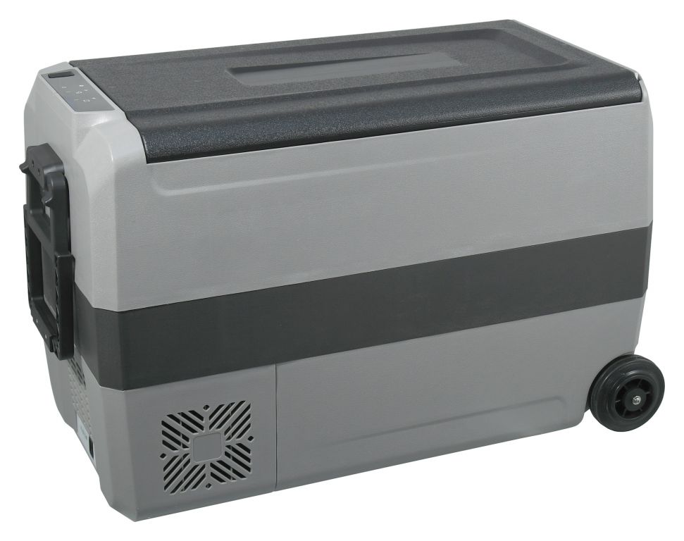 Chladiaci box môže byť napájaný z 12 V alebo 24 V zásuvky automobilov či lodí, alebo z bežnej zásuvky 230 V. Je vybavený výkonným kompresorom s chladiacim médiom a možno ho použiť ako chladničku s teplotou 0 - 10 °C, ale aj ako mraziaci box s teplotou až -20 °C. Režimy chladiaceho boxu zahŕňajú ECO mode pre úsporu elektrickej energie a MAX mode pre rýchle ochladenie obsahu až k -20 °C (pri okolitej teplote 25 °C). Ďalej je box vybavený inteligentným systémom ochrany pred vybitím pripojeného akumulátora, ktorý možno nastaviť cez menu prístroja. Chladiaci box má osadený displej so všetkými ovládacími prvkami. Vnútorný priestor boxu je rozdelený do dvoch častí s možnosťou rozdielneho nastavenia teplôt, alebo možno vybrať deliacu priečku a využiť tak celý priestor ako jeden. Vďaka tomu je možné rozloženie potravín a nápojov podľa požiadaviek na optimálne chladenie. Vnútorný priestor boxu je ďalej vybavený LED osvetlením. Madlá na vonkajšej strane boxu z odolného plastu spoločne s gumovými kolieskami zaisťujú výbornú mobilitu zariadenia. Vonkajší plášť je vyrobený z odolného plastu sivej farby, ktorý spolu s perfektnou PU izoláciou zaisťuje dlhodobé zachovanie stabilnej teploty vo vnútri boxu a zaručuje veľmi nízku spotrebu energie. Okraj ovládacieho panelu je doplnený o zakrytú USB zásuvku pre napájanie zariadení s USB konektorom.