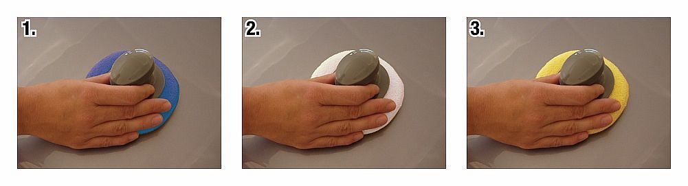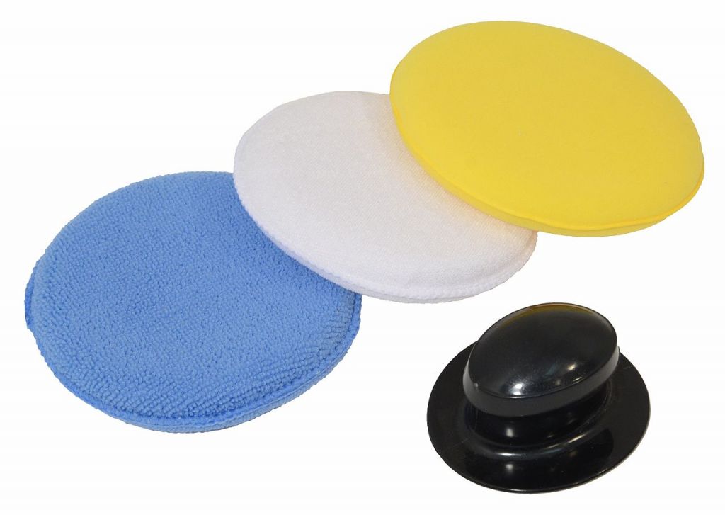 Súprava troch kotúčov s priemerom 12 cm pre dokonalé ručné vyleštenie karosérie vozidla. Ergonomická rukoväť je vyrobená tak, aby sa dala použiť na každý kotúč.