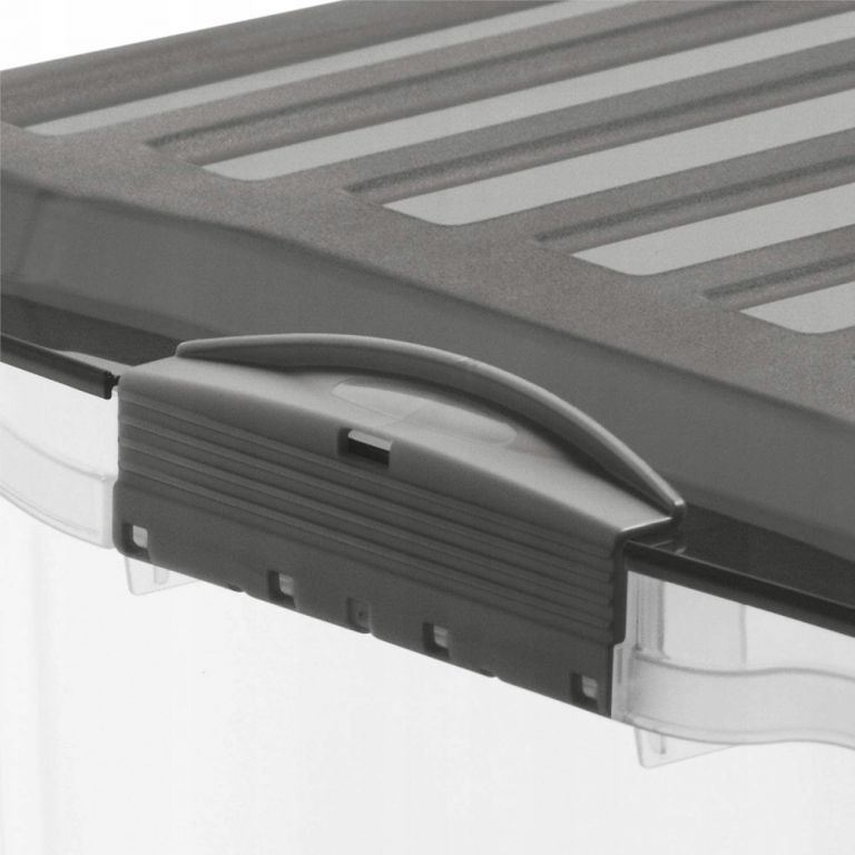 Úložný box s objemom 38 l. Transparentný box + šedé veko. Veko je opatrené klipmi proti nežiaducemu otvoreniu. Kvalitný materiál a prevedenie.