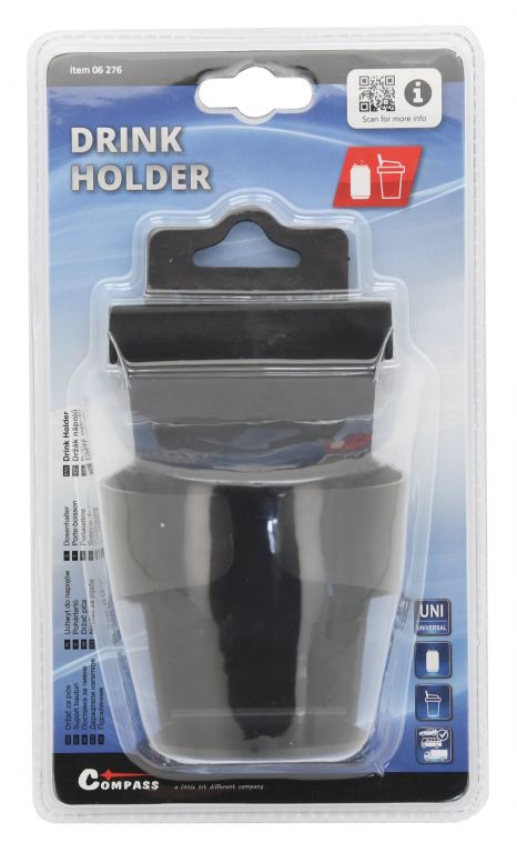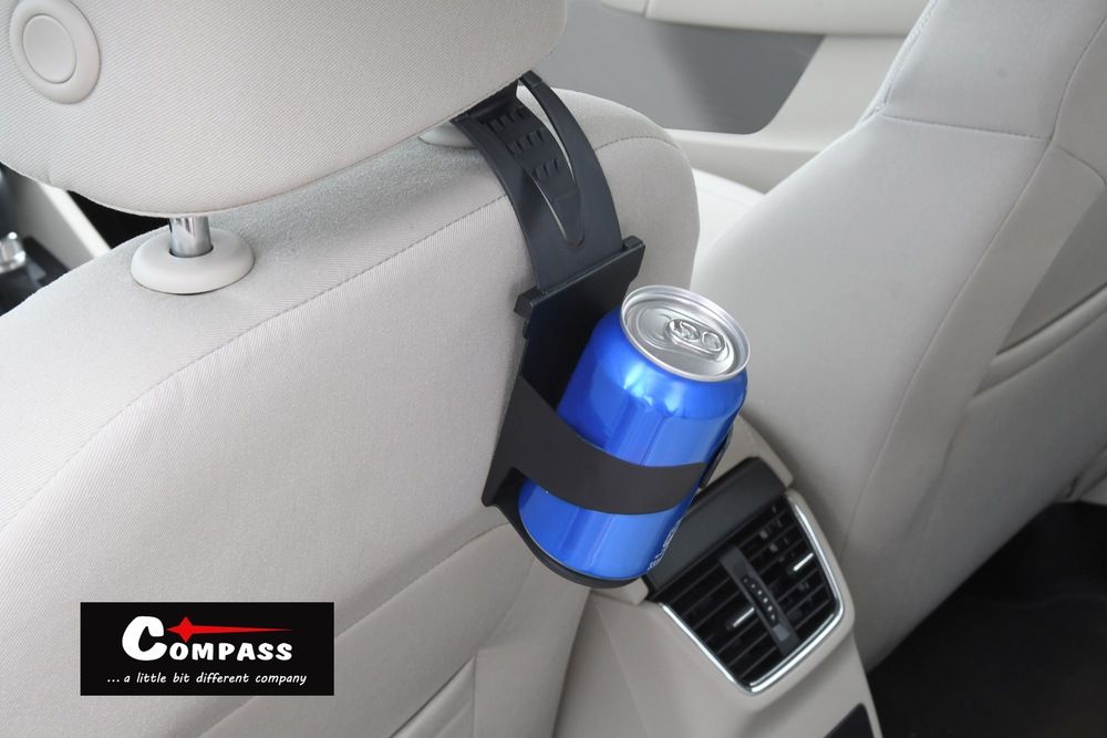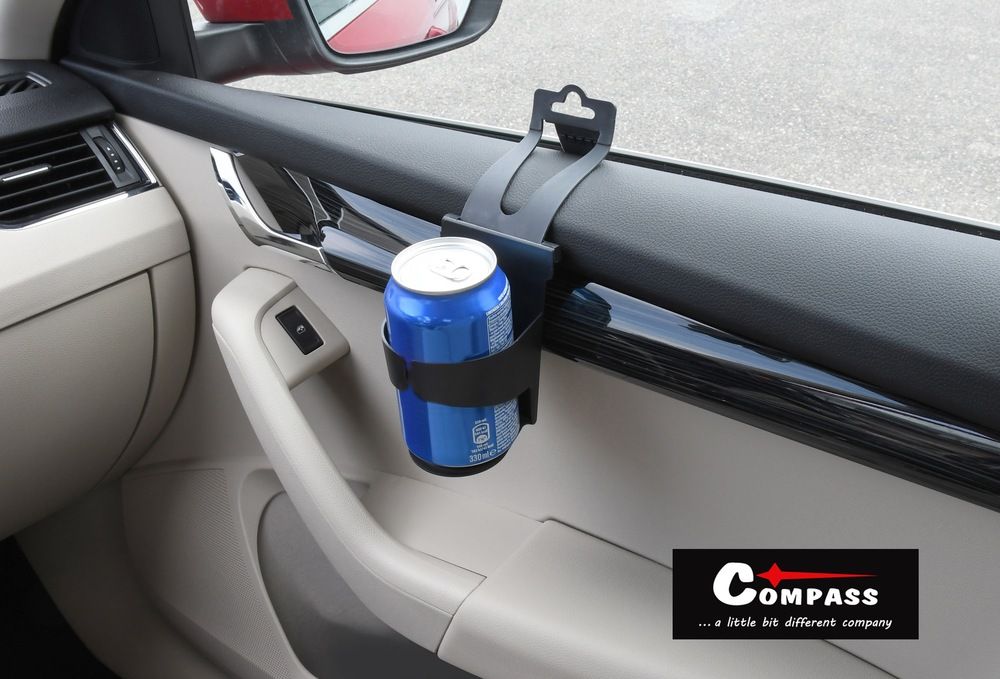 Držiak je tvarovaný z pružného materiálu, závesná časť je zo zadnej strany vystužená na zaistenie priľnavosti a tým znižuje riziko pohybu držiaka s nápojom za jazdy. Držiak je možné pripevniť typicky za hranu dverí (do tesnenia okna). Pomocou otvoru je možné umiestniť na tyčku hlavovej opierky alebo na iné vhodné miesto vo Vašom vozidle.