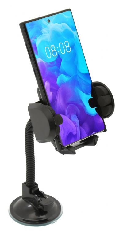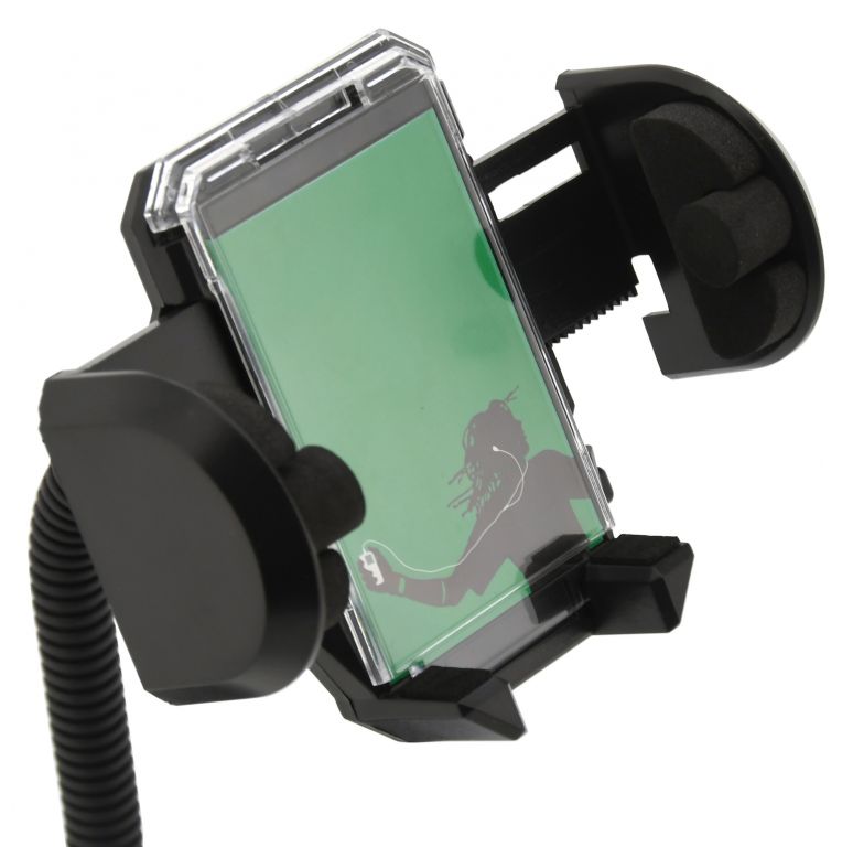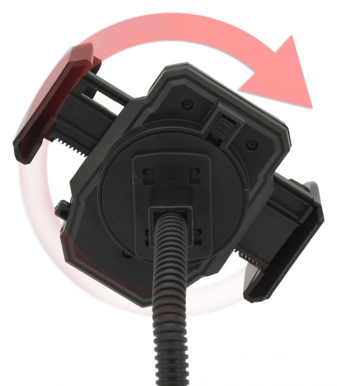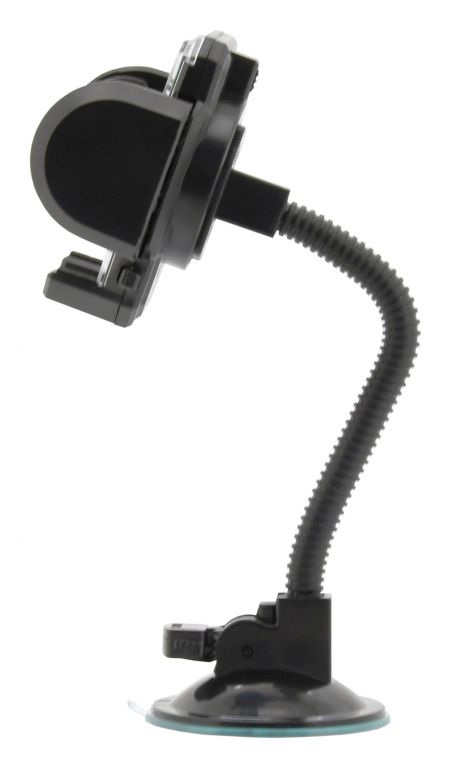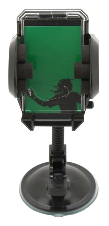 Držiak s extra silnou prísavkou, na uchytenie telefónu. Šírku je možné zväčšiť stlačením bočného tlačidla, telefón sa potom umiestni do držiaka a ten sa potom zaistí stlačením čeľustí. Vďaka uzamykateľnému otáčaniu o 360 ° a flexibilnému ramenu držiaka, je možné ľahko nastaviť vhodnú polohu telefónu. Telefón v klipse pevne drží vďaka dômyselnému mechanizmu, proti poškriabaniu je upnutý telefón chránený penovými prvkami.
