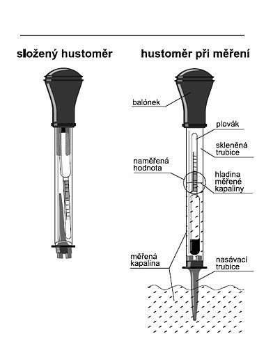 Zariadenie určené na meranie náplne chladiča automobilu. Pomocou tohto hustomeru je možné merať kvapaliny na báze glykolu aj chladiace kvapaliny na báze metanolu. Meranie stavu kvapaliny sa prevedie nasatím chladiacej kvapaliny do sklenenej trubice. Odčítaním hodnôt na plaváku je možné zistiť teplotu (v stupňoch Celzia), pri ktorej meraná kvapalina zamŕza.