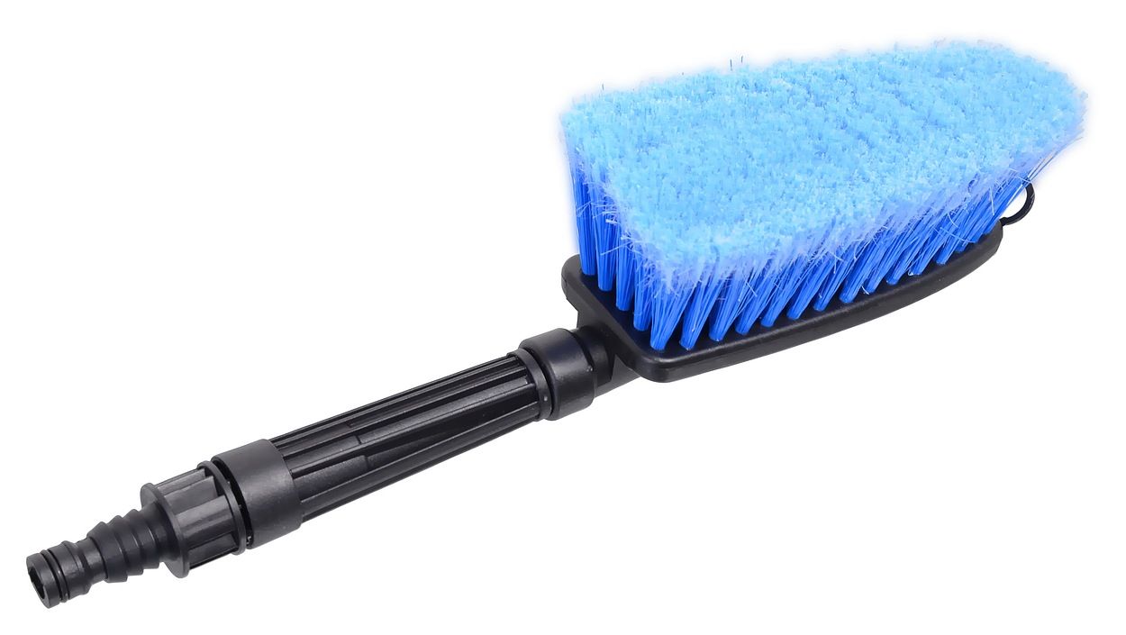 Praktická prietoková kefa s mäkkými štetinami poskytuje dôkladné umývanie vozidiel.