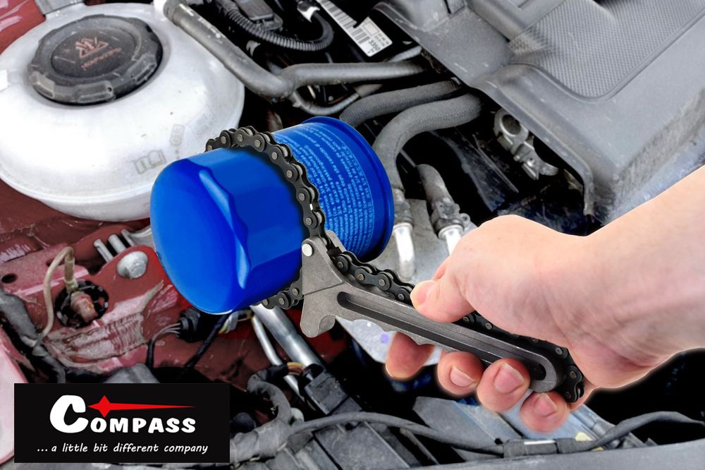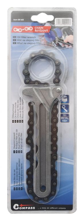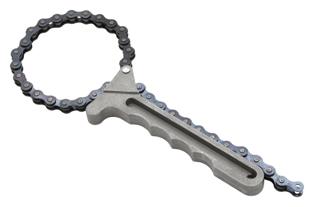 Univerzálny reťazový kľúč na montáž a demontáž väčšiny typov olejových filtrov. Kľúč je možné použiť na filtre až do priemeru 105 mm.