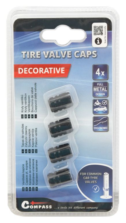 COMPASS ozdobné kryty ventilov, čierne, 4 ks
