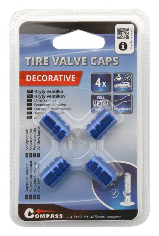 COMPASS ozdobné kryty ventilov, modré, 4ks
