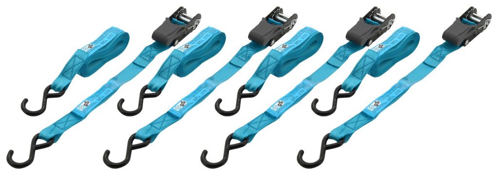 Popruhy vysokej kvality na zabezpečenie predmetov, batožiny alebo nákladu. Na upnutie sa využíva kovová račňa s istiacim mechanizmom. Konce popruhov sú osadené kovovými hákmi s povrchom z tvrdeného plastu.