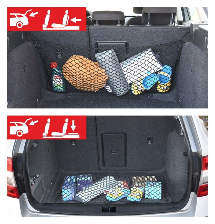 Pružná upevňovacia sieť do interiéru vozidla, veľkosť 50 x 90 cm, vhodná pre ľahké zaistenie batožiny, nákupu, apod. Ideálna na pripevnenie predmetov na dno batožinového priestoru, prípadne na zadnú stranu zadných sedadiel osobného automobilu. Vďaka svojej pružnosti je možné uchytiť aj väčšie množstvo predmetov. Sieť tak zabezpečí nákladový priestor proti pohybu týchto predmetov počas jazdy.