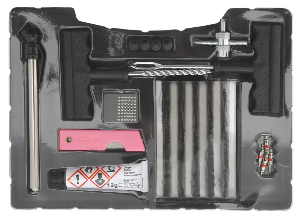 Táto sada je vhodná ako pre automobily, tak aj pre motocykle, štvorkolky a ďalšie bezdušové pneumatiky.