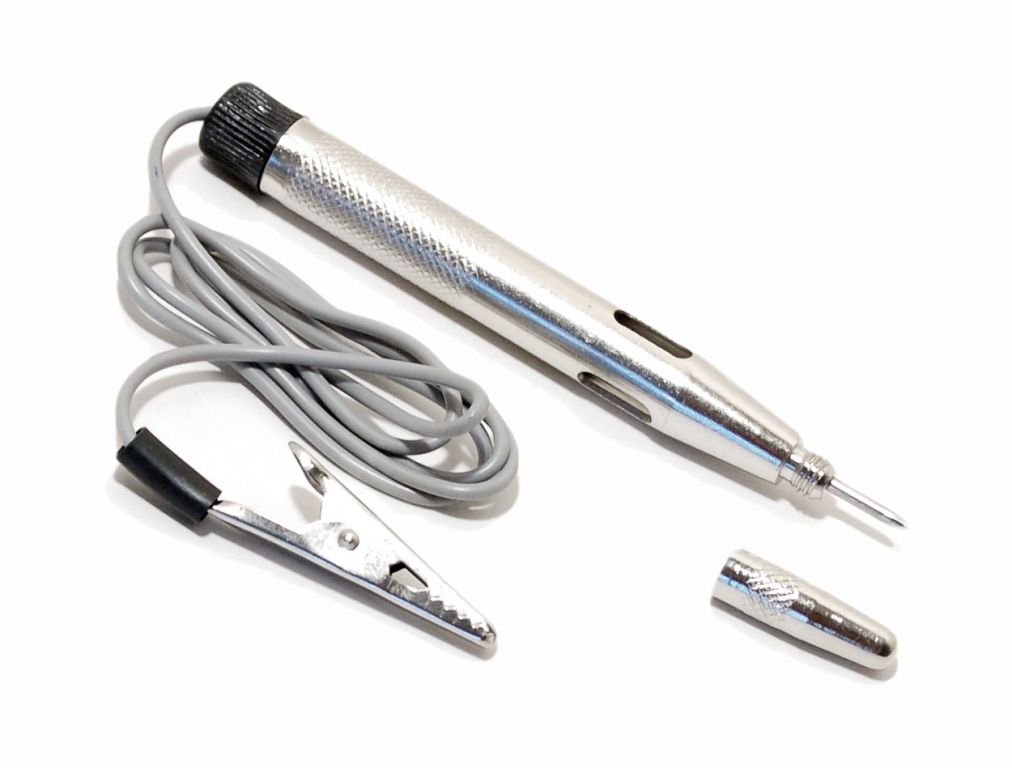 Univerzálna kovová skúšačka so špicatým hrotom na jednej strane a klipsom na strane druhej. Vhodná na rýchle hľadanie prerušenia vodičov, poistiek, chybných žiaroviek a pod.