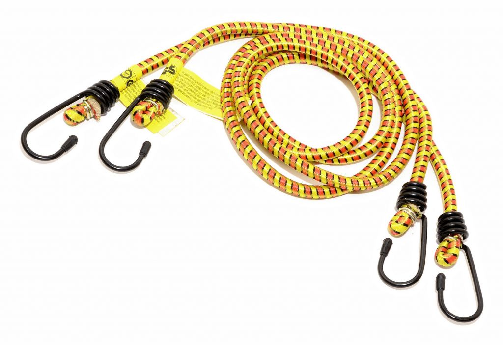 Kvalitné pružné upínače zakončené kovovými hákmi. Balenie obsahuje 2 ks, homologácia TÜV/GS.