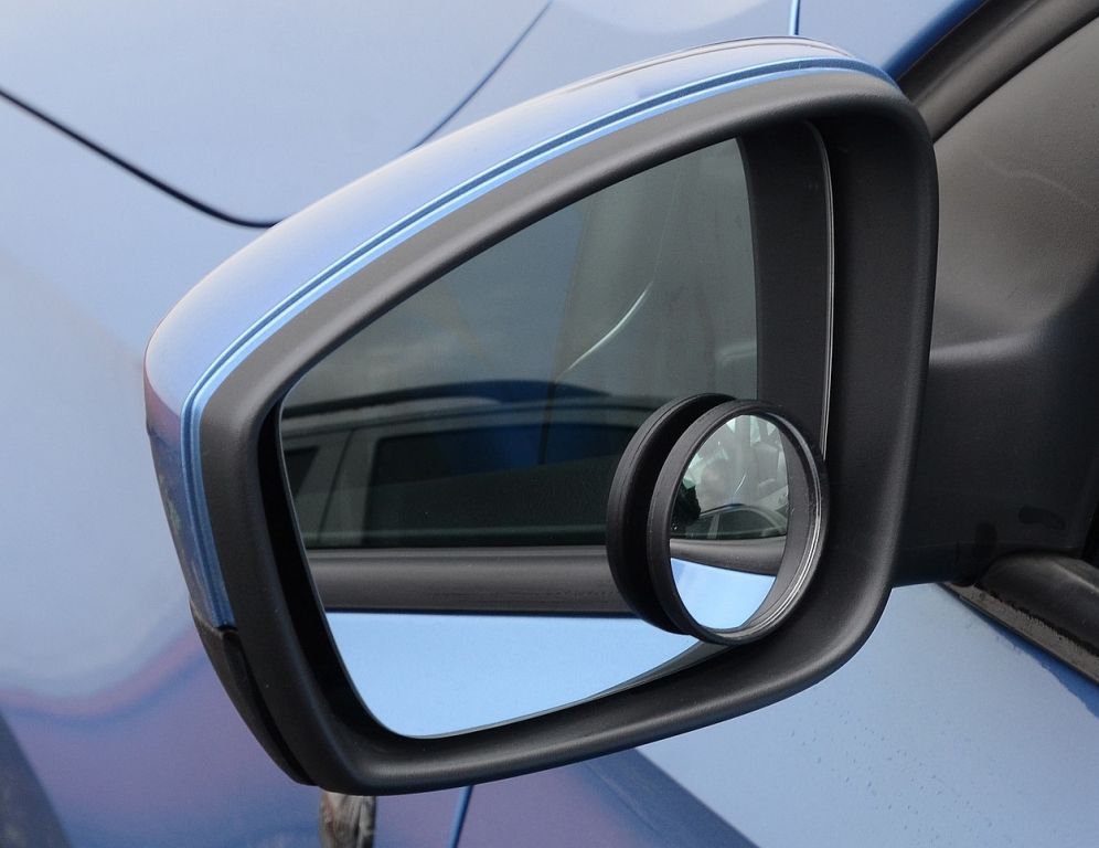 Doplnkové zrkadlo, určené na nalepenie na existujúce vonkajšie spätné zrkadlo.
