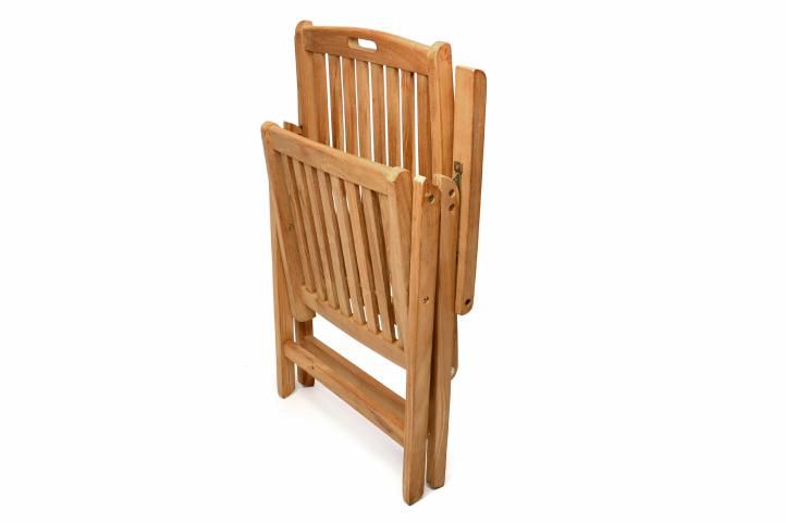 Sada dvoch skladacích stoličiek z teakového dreva s vysokým operadlom, ktoré je možné nastaviť do piatich polôh. Masívne skladacie stoličky sú vyrobené z veľmi odolného teakového dreva. Stoličky majú vysokú chrbtovú opierku a môžete si ich nastaviť do piatich polôh. Sú perfektné na terasu alebo záhradu, kde si môžete užívať s rodinou a priateľmi príjemné letné večery. Stoličky sú skladacie a umožňujú tak jednoduché uloženie. Tento produkt vás nadchne už pri porovnaní pomeru ceny a kvality.