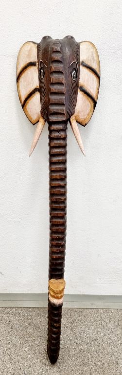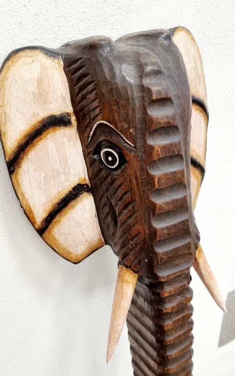 Drevená maska na zavesenie na stenu. Slon znamená silu a múdrosť. Pokiaľ sa umiestni slon do západnej časti obývacej izby, bude prinášať šťastie celej rodine, ak je umiestnený do spálne vedľa postele, bude prinášať lásku a podporovať plodnosť.
