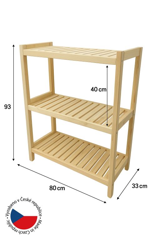 Drevený regál, 3 police, 93 x 80 x 33 cm