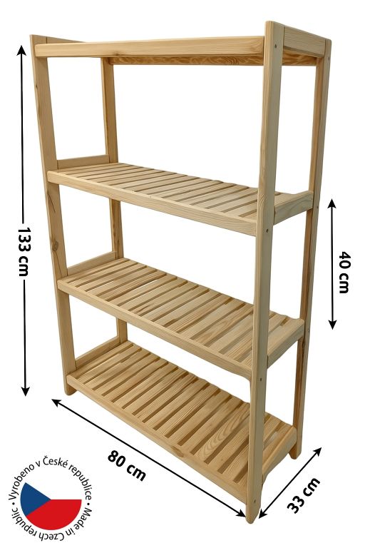 Drevený regál, 4 police, 133 x 80 x 33 cm