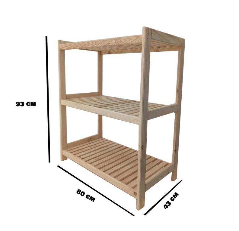 Drevený regál s 3 policami, 93 x 80 x 43 cm