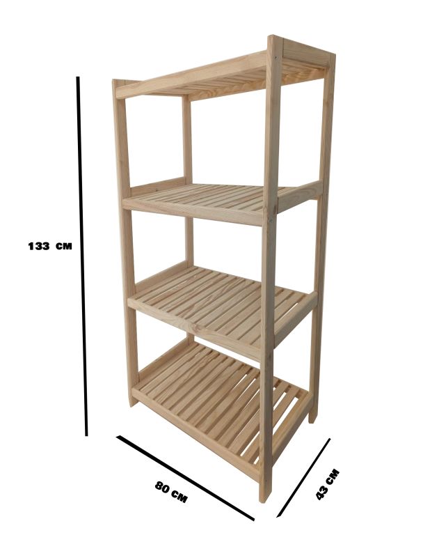 Drevený regál sa hodí vďaka precíznemu opracovaniu dreva do Vašej kuchyne, spálne alebo ďalších bytových priestorov. Je esteticky decentný a vždy skvele zapadne do Vašej domácnosti. Regály je možné kombinovať, všetky modely sú spracované v rovnakom štýle. Poskytuje dostatok úložného priestoru, každú policu je možné zaťažiť maximálne 25 kg. Drevený regál má jednoduchú a rýchlu montáž, všetko potrebné nájdete v krabici, nepotrebujete teda žiadne náradie.