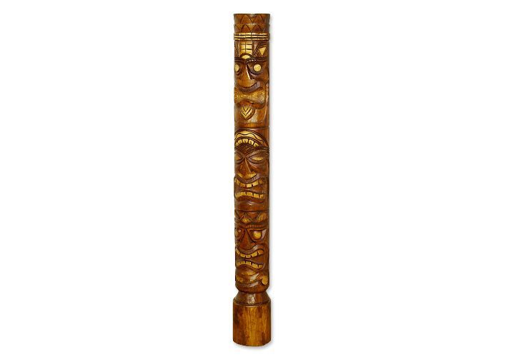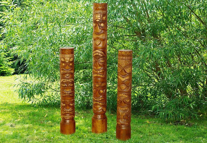 "Ručne vyrezávaná socha z dreva s Tiki motívom. Táto krásna, ručne vyrezávaná tiki socha vyčaruje kúsok exotiky u Vás doma. Je vyrobená s láskyplnou starostlivosťou, každý kus je ručne unikátny. Veľkosť je asi 150 cm. Ako je u nás Adam v Polynézii je to Tiki. Tiki je Boh lenivosti, povalačstva a lásky. Poznámka: Sochy Tikis sú určené pre výzdobu interiérov. Vystavenie poveternostným vplyvom, môže viesť k erózii a prasklinám v dreve. Vyrobené z dreva Výška: 150 cm Priemer: 20 cm Všetky rozmery sú približné"