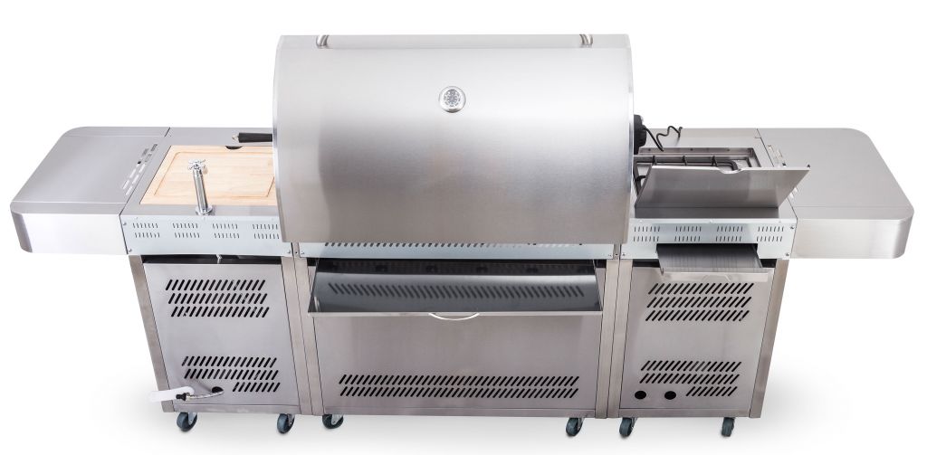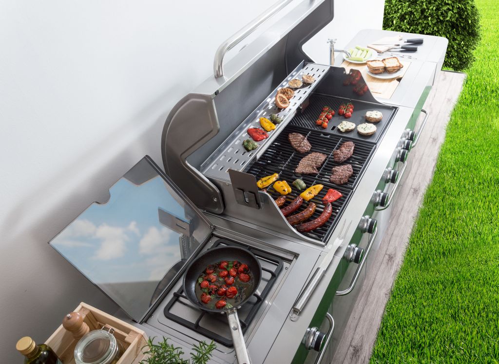 Grilovacia kuchyňa so vstavaným drezom, obrovskou pracovnou plochou a múdro riešenými odkladacími priestormi je odpoveďou na prianie šéfkuchárov.
