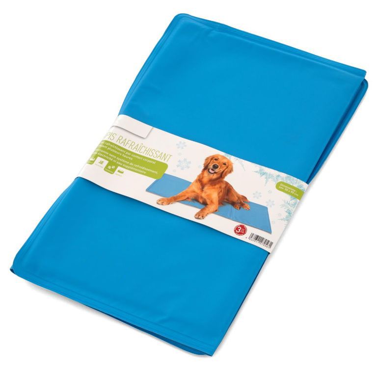 V horúcich letných dňoch naši štvornohí priatelia radi hľadajú chladné miesto. Táto chladiaca podložka odvádza teplo rovnomerne z tela, a potom ho uvoľňuje do okolitého vzduchu. Je šetrnejšia ako klimatizácia alebo ventilátor a vďaka nej zabaránite prehriatiu organizmu Vašich štvornohých maznáčikov. Nevyžaduje žiadne predchladenie, chladenie prostredníctvom elektriny a nie je potrebná ani voda. Možno ju použiť kedykoľvek a kdekoľvek, či už na podlahe, v aute, pri kempovaní, do psieho pelechu alebo psej búdy. Chladiacu podložku možno použiť mnohými spôsobmi, tiež ako napr. podložku pre notebooky. Podložka je vodotesná a veľmi ľahko udržateľná vodou a mydlom.