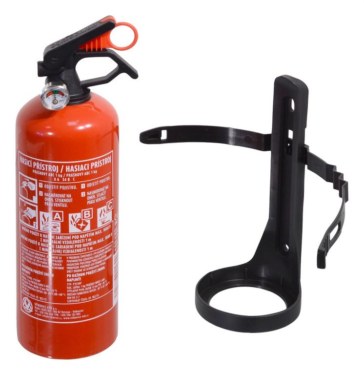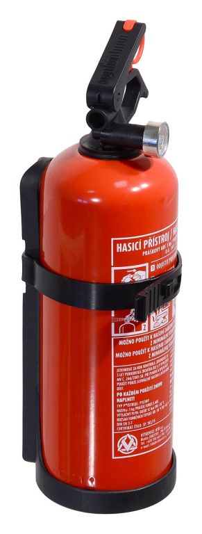 Práškový hasiaci prístroj s vyššou hasiacou schopnosťou a s držiakom, vďaka ktorému je ľahké ho pripevniť na stenu či do automobilu.