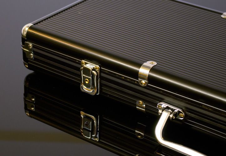 Robustný hliníkový kufor s dvoma zámkami je ideálny až pre 500 pokerových žetónov.