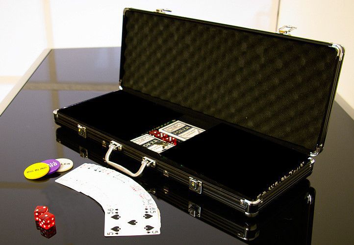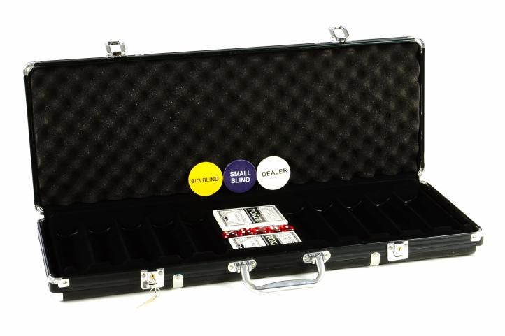 Robustný hliníkový kufor s dvoma uzamykateľnými zámkami je ideálny až pre 500 pokerových žetónov. Je potrebné dokúpiť žetóny, ktoré si môžete individuálne vybrať, zvyšok vybavenia je kompletný.