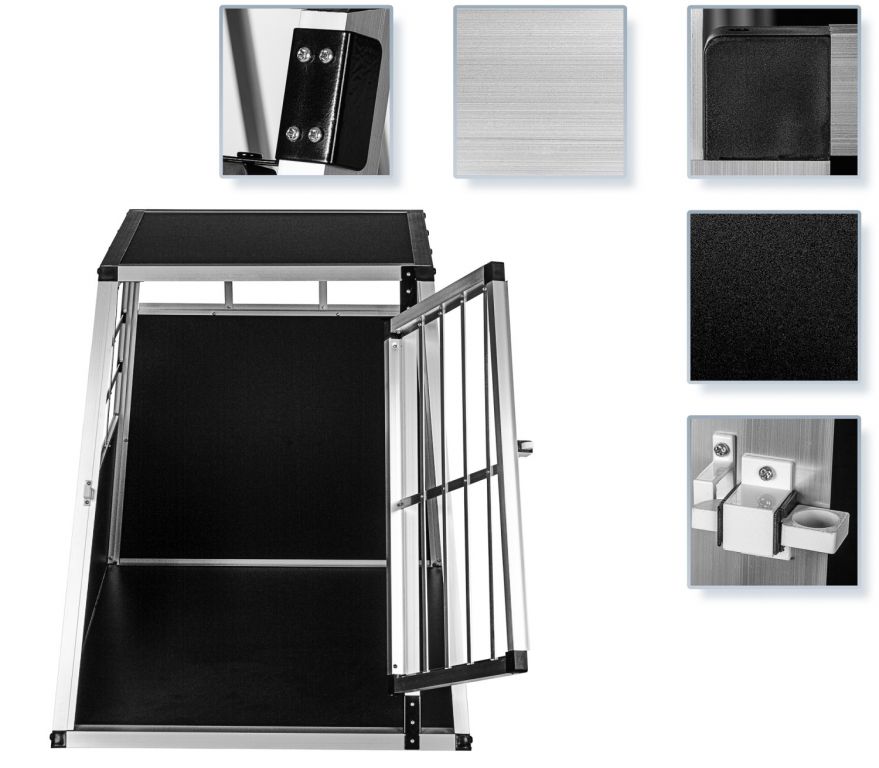 Náš prepravný box pre psov vyrobený z hliníka a MDF ponúka spoľahlivú a bezpečnú možnosť prepravy Vášho štvornohého priateľa.
