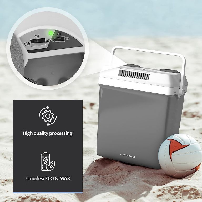 Chladiaci box má kapacitu 25 l, takže si do neho môžete uložiť teplé alebo studené jedlo a nápoje na kempovanie alebo výlety. Box má mnoho prívetivých funkcií ako je integrovaná rukoväť, dve rôzne prípojky napájania (normálne a vhodné do auta) a systém otvárania veka v dvoch smeroch. Je vybavený programom ECO, ktorý spotrebováva menej energie, zatiaľ čo izolácia C5H10 udržuje teplotu vovnútri dlhšie stabilnú. Je vyrobený z vysoko kvalitných a odolných materiálov a odolá opotrebovaniu v kempoch, na pláži alebo na vašej záhrade. Uchovávajte pri teplote medzi 10 - 32 °C.