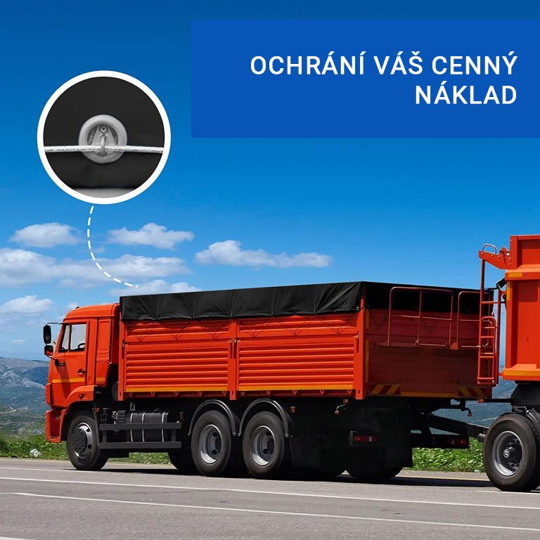 Naša nepremokavá plachta s okami poskytuje ochranný kryt pre váš cenný náklad a rôzne vonkajšie predmety, ako sú bazény a záhradný nábytok. Trojvrstvová ochranná plachta je vyrobená z polyesteru potiahnutého PVC (650 g/m²) odolného proti UV žiareniu. Vďaka mechanickým vlastnostiam je naša plachta pre nákladné vozidlá, lode a obytné automobily mimoriadne odolný proti roztrhnutiu a opotrebovaniu. Vonkajšia plachta je vybavená okami vo vzdialenosti 100 cm a ponúka vynikajúcu odolnosť proti vode a poveternostným vplyvom.